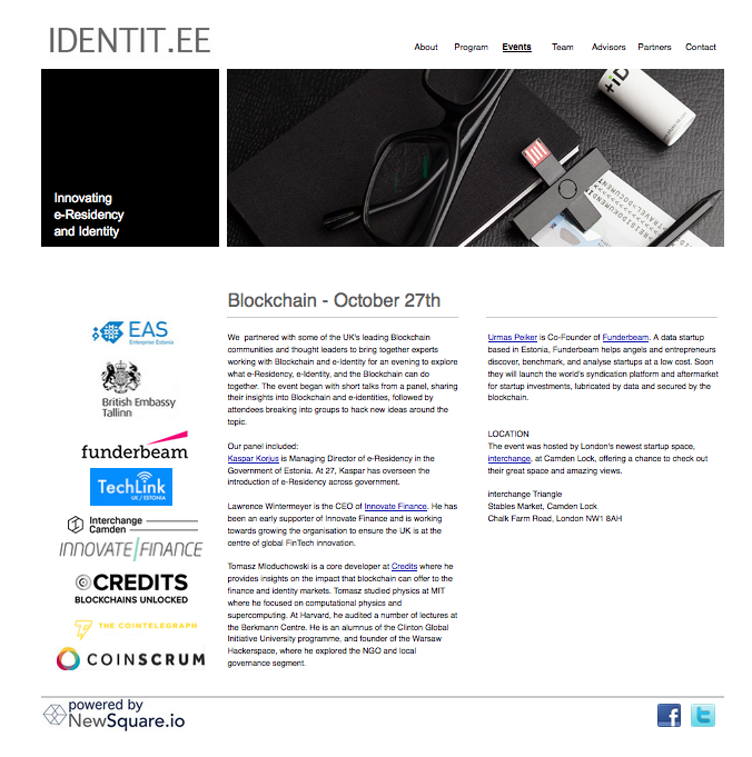 The event will bring together the Estonian Government and some of the UK's leading Blockchain communities and thought leaders to bring together experts working with Blockchain for an evening to explore what e-Residency, e-Identity, and the Blockchain can do together. The event will begin with short talks from a panel, sharing their insights into Blockchain and e-identities, followed by attendees breaking into groups to hack new ideas around the topic.